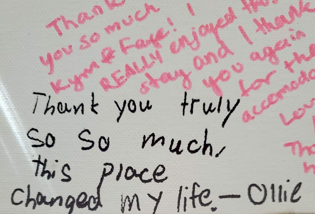 A special message from Kym & Faye – “Thank you also for the kind words and affirmations written on the prayer wall. It encourages and convicts us to keep serving.”